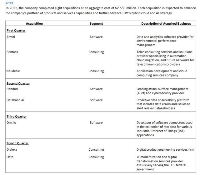 与此同时,IBM每年继续花费巨资进行收购。