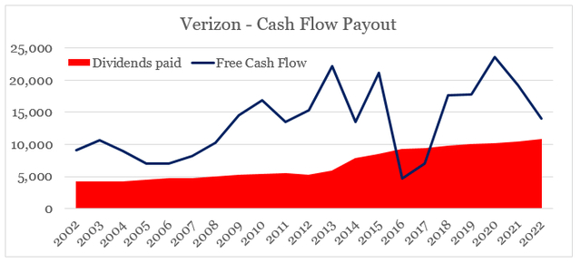 从历史上看,Verizon的年度股息支付与净收入数字之间也一直保持着较大的差距。