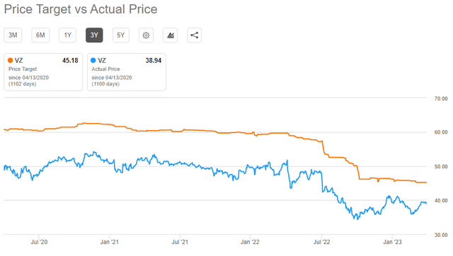更糟糕的是,该公司的股价自2021年12月以来下跌了23%,实际上已成为同行中表现最差的股票,而美国电话电报(NYSE:T)和T-MobileUS(NASDAQ:TMUS)实现了两位数的正回报。