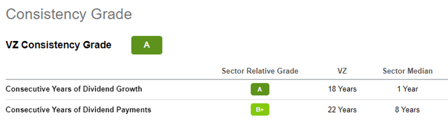 在股息支付方面,Verizon拥有连续18年股息增长的惊人记录,而该行业的中位数仅为一年。