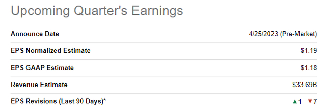 调整后的EPS为1.18美元,基本符合公司先前为整个2023财年提供的指引的中点。