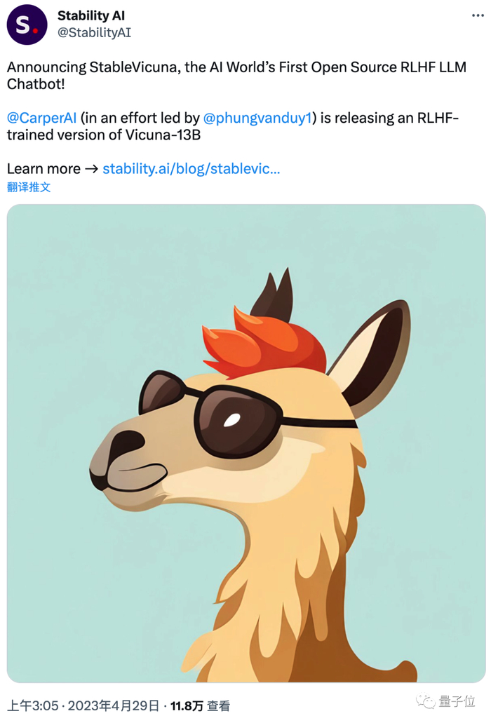 语言模型方面,他们也推出了首个开源并引入RLHF技术的聊天机器人StableVicuna,基于小羊驼Vicuna-13B模型实现。