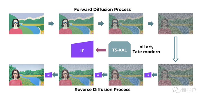 DeepFloyd IF仍然基于扩散模型,但与之前的Stable Diffusion相比有两大不同。