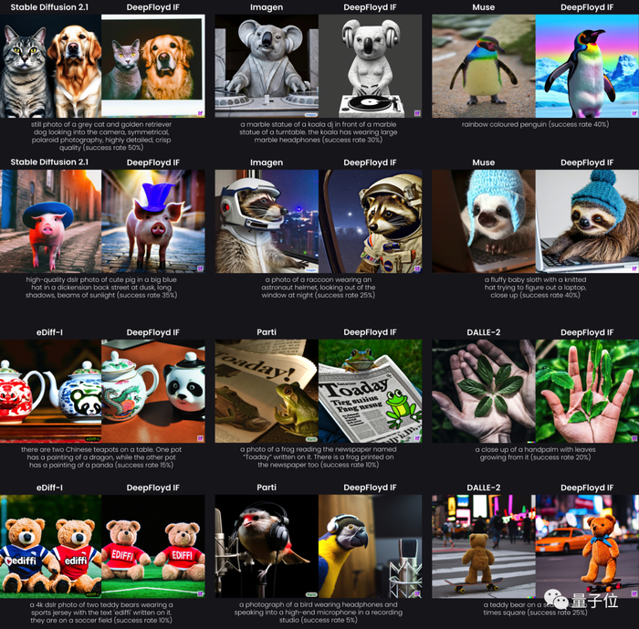 官方还提供了一组DeepFloyd IF与其他AI绘画模型的直观对比。