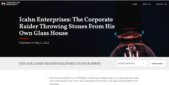 曾发百页报告做空印度首富阿达尼集团(Adani Group)而引起轩然大波的美国新兴做空机构兴登堡研究(Hindenburg Research LLC)再度出击,此次矛头对准的是“华尔街之狼”、著名亿万富翁投资者卡尔·伊坎(Carl Icahn)!