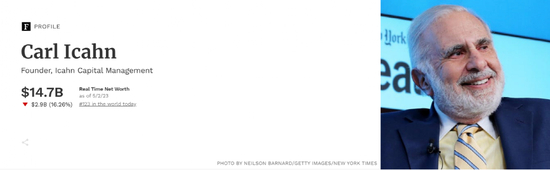 而伊坎个人身价,也一夜蒸发29亿美元(约200亿人民币)。根据福布斯榜单显示,截至收稿,伊坎个人身价为147亿美元,排名世界富豪榜第123位。