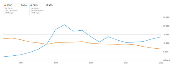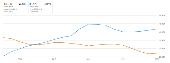 你可以看到Enphase表现更好的一点是毛利率。41%与27%是一个很大的差异,特别是随着Enphase在强劲增长的同时提高了利润率。