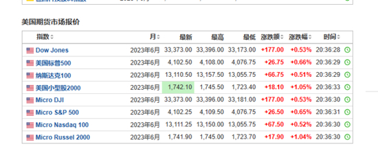 美股股指期货短线走低,涨幅收窄,道指期货涨0.5%,纳指期货、标普500指数0.4%。