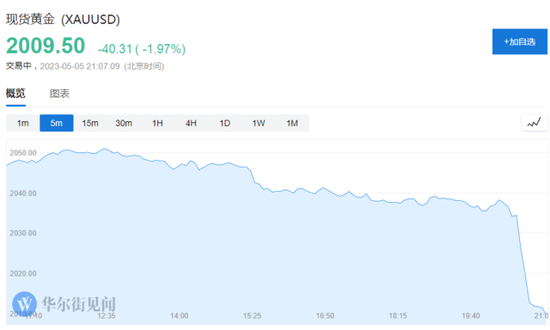 现货黄金短线急挫近30美元,跌破2010美元/盎司。