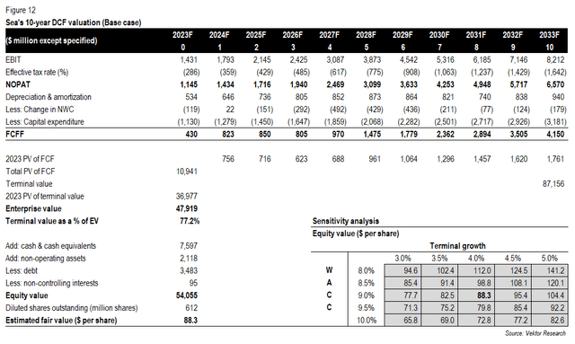 Sea 的 10 年 DCF 估值(Vektor Research)