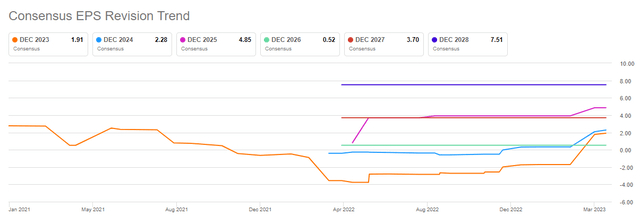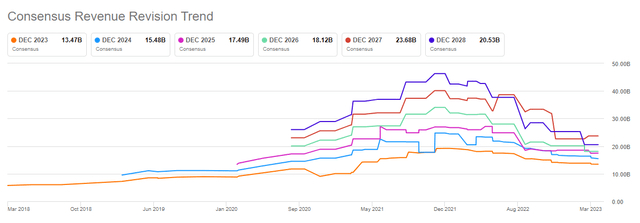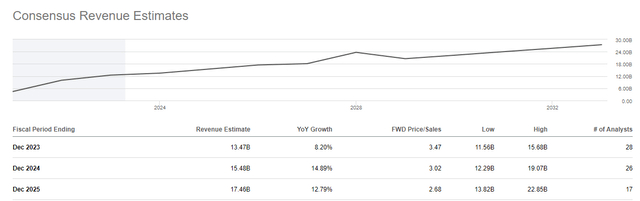 共识预计到 2025 年收入每年增长 12%,而这里的基本情况估计表明收入每年增长 16%。尽管进一步的成本效益努力将影响 GMV 增长,但电子商务渗透率较低、利率扩张以及电子商务和数字金融服务尚未开发的巨大市场将有助于推动 Sea Limited的收入增长。此外,该行业正在走向盈利。