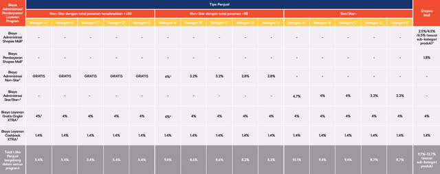其次,Shopee是Shopee Mall旗下的个人、中小企业、大型零售商通过支付交易手续费来销售商品的电子商务平台。卖家可以在完成几个里程碑后将自己的状态升级为星级或星级+,但会被收取更高的交易费用,希望买家认为他们比非星级卖家更“值得信赖”。或者,卖家将通过充值“硬币”余额并将这些硬币用于 Shopee 的广告服务来获得更多点击。此外,Shopee还从事Shopee Food旗下的外卖业务。