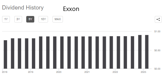 埃克森美孚20年来每年都增加股息,但过去五年相对微薄,平均年增长率不到4%,从每季度0.77美元增至每季度0.91美元。