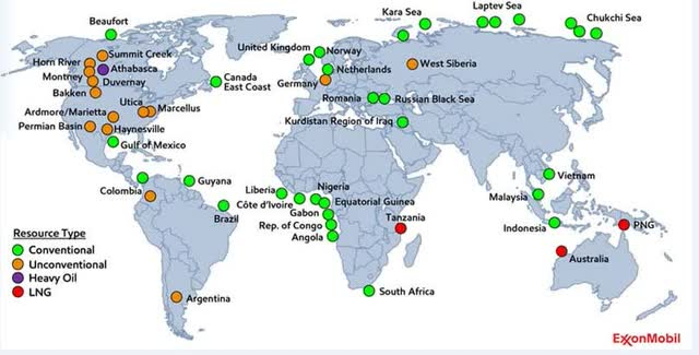 查看运营地图,很容易看出埃克森美孚资源的规模,这些资源实际上遍布每个大陆。