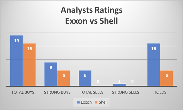 看看华尔街分析师对这两家公司的评级,壳牌在没有卖出建议的情况下略有优势,与埃克森美孚的六次卖出(包括一次强力卖出)相比。另一方面,尽管有六项卖出建议,埃克森美孚看起来还不错。与壳牌的16个买入评级相比,它的买入评级为19个。埃克森美孚还有9次强力买入,比例非常高。