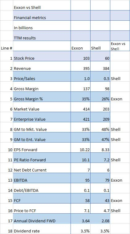 将埃克森美孚与壳牌进行比较会发现显着差异,尤其是在财务指标方面。