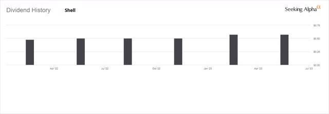 壳牌在2022年1月简化了他们的股权结构,因此只有很短的派息历史。
