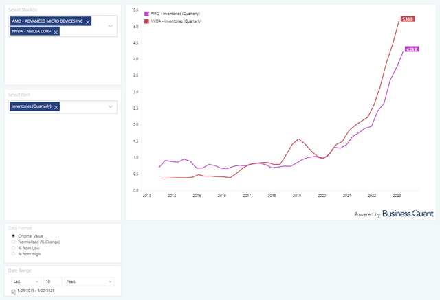 如果销售量真的很糟糕,那么英伟达及其渠道合作伙伴应该在本季度结束时(大约在 4 月 30 日左右)有大量未售出的库存。在这种特殊情况下,英伟达的库存水平连续飙升,升至历史新高。然而,如果该芯片制造商的库存水平环比持平,则表明这些报告只不过是毫无根据的猜测。
