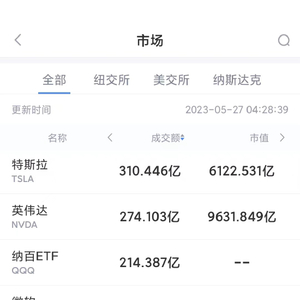5月26日美股成交额前20:英伟达股价再创新高,市值逼近1万亿美元