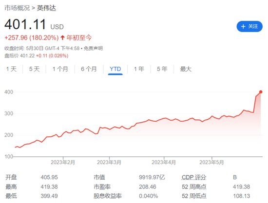 周二,英伟达开盘涨超4%,盘初曾涨近7.7%,市值突破万亿美元大关,在上周公布财报后连涨连续三个交易日、且三日创股价历史新高,收涨3%,收盘时略低于1万亿美元。今年以来,英伟达已经累计上涨了180%。该公司也成为首家市值突破万亿美元的芯片公司,也是美股市场上第五个达到这一里程碑的公司。