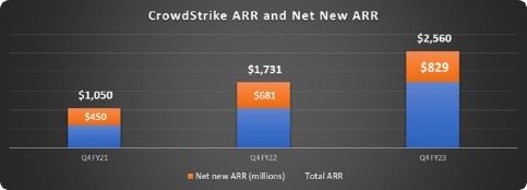 从2023财年开始,CrowdStrike将保持829美元的新净ARR,轻松超越50亿美元的目标。事实上,新年度的净ARR可能会继续增长,这意味着我们应该期待CrowdStrike能够超越这个数字。