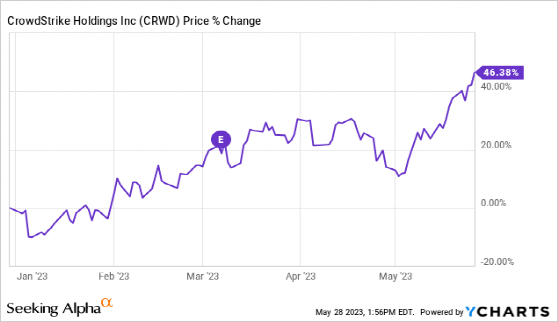 5月24日,英伟达(NVIDIA)公布的财报鼓舞了整个科技行业,包括大多数与人工智能(AI)相关的公司。如下图所示,CrowdStrike的股价飙升,迄今为止上涨了46%。