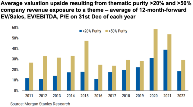 摩根士丹利指出,从长期来看,与人工智能等主题相关的股票的估值有望比“非纯粹”股票高出10-50%,平均溢价为25%。