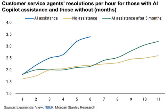 摩根士丹利表示,在工业广泛采用电力和互联网普及之后,技术扩散往往导致生产率提高2.5倍(以人均GDP衡量)。