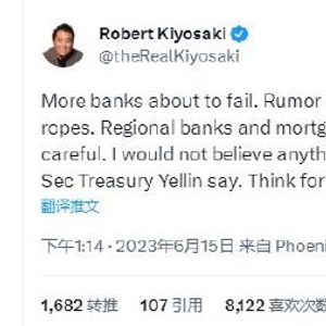 《富爸爸穷爸爸》作者:美国更多银行将倒闭,鲍威尔和耶伦的话不能信