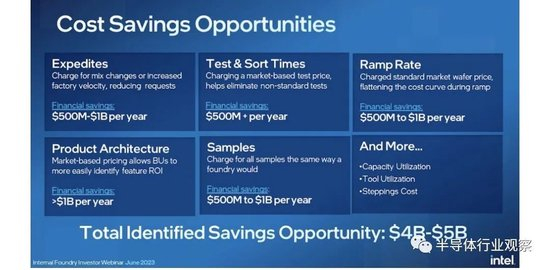 该公司表示,内部代工厂模式的目标仍然是生产业内第二大外部代工厂。它声称,将这一组纳入自己的损益表还将带来 80 亿至 100 亿美元的“成本削减机会”。包括基于“市场”价格的斜坡率以及测试和分类时间。然而,一开始营业利润率可能为负。