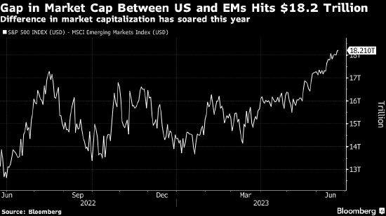 这些预测发布之时,新兴市场股票表现依然不佳。基准MSCI新兴市场指数今年以来涨幅不到4%,不及美股。美国标普500指数上涨14%,纳斯达克100指数飙升38%。