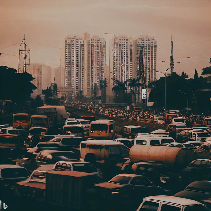 让他生成一张‘车水马龙’的图片,它立马照做,生成4张候选照片请君选择。