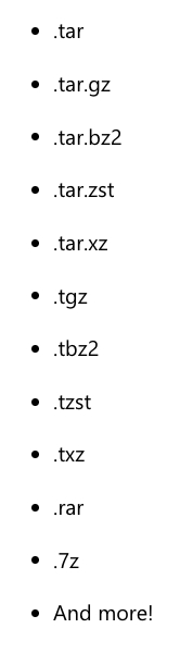 现在,使用文件管理器,就可以解压压缩包了。支持以下文件格式——
