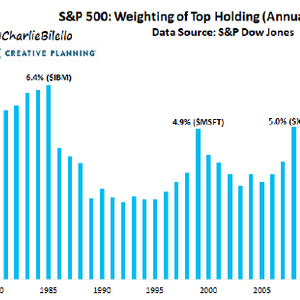 如此高的权重意味着,苹果股价的波动会对指数造成非常大的影响。然而许多投资组合的管理者配置的苹果股票比例低于这一权重,这可能是出于对投资组合灵活性的要求,对持有单一股票过多的担忧,以及基金自身规则的限制。