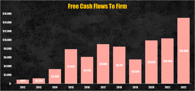 尽管其商业模式需要巨额再投资,台积电过去仍能够为公司带来稳定的自由现金流(FCFF),到2022年相当于150亿美元。
