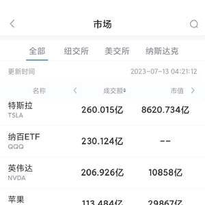 周三美股成交额第1名特斯拉收高0.82%,成交260亿美元。当地时间周三(7月12日),马斯克在社交媒体上宣布,他领导的团队正式成立xAI公司。