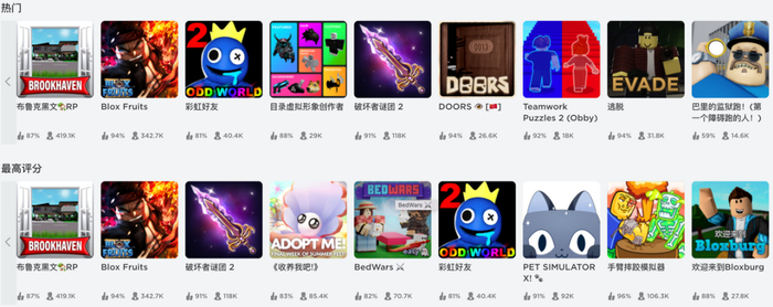 Roblox是一个集成了海量的玩法简单、画面简陋的沙盒游戏平台,有点类似于国内早期也有时代的4399小游戏。Roblox上的游戏大多为非专业开发者,但Roblox提供了完备的开发工具和教程,大大降低了开发门槛。