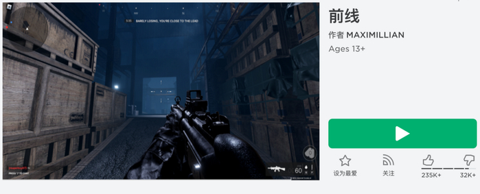 这是一款FPS手游,4K画质,建模水平已经脱离简约沙盒风,可以直接与大部分的独立射击手游app媲美。这款游戏在Roblox上线不到一个月,全球访问量已达1200万次,截至目前,有80多万玩家将这款游戏设为最爱。
