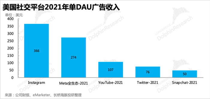 2)Snap则不仅是年轻用户多,而且整体规模也明显比Meta、TikTok低得多,因此单DAU对应的广告收入就更没有优势了。