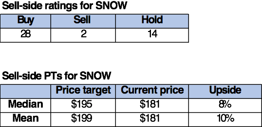 下图概述了 Snowflake 的卖方评级和价格目标。