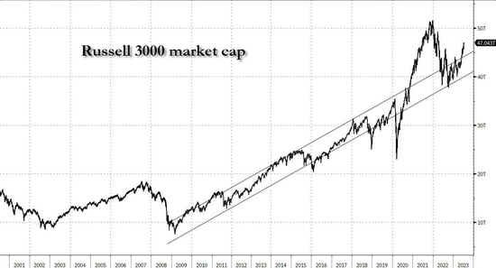 周一,罗素3000指数的总市值超过了47万亿美元。