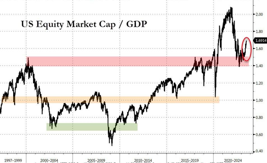 以美国GDP为例,最新统计数据约为26.5万亿美元。因此,投资者实际上是在说,美国企业的价值是美国所有产品(无论是企业还是其他)总产出的1.77倍。