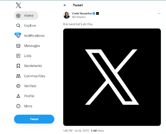 新浪科技讯 北京时间7月24日下午消息,推特首席执行官Linda Yaccarino发文,宣布推特Logo正式改为X。