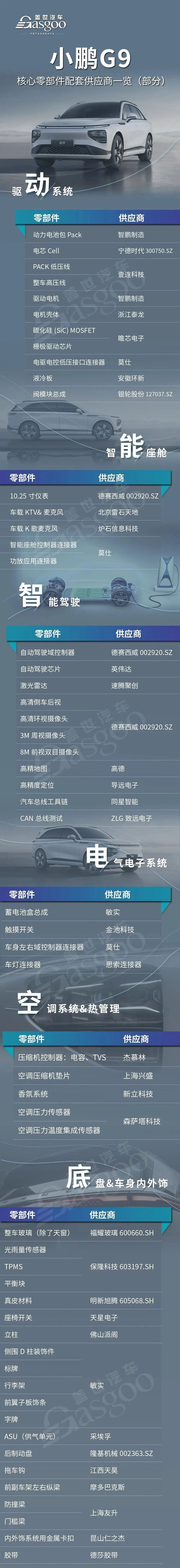 小鹏G9的供应链企业