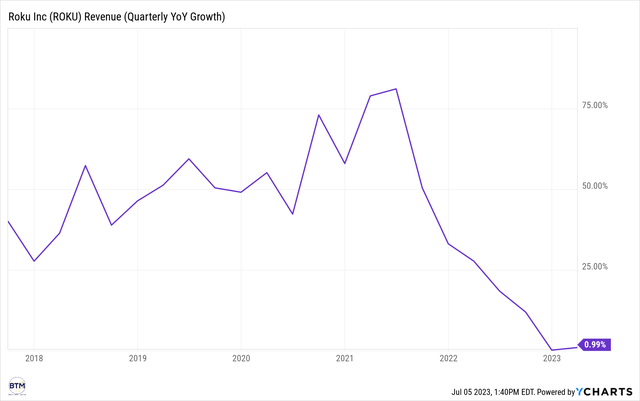 为此,TSOH的Morris先生在下面为我们制作了另一个精彩的图表,通过它我们可以更好地了解Roku目前的增长率: