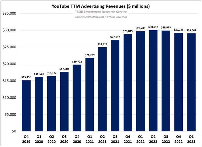 从上面可以看出,YouTube 在过去三个季度的销售额一直在下降。