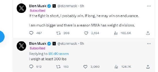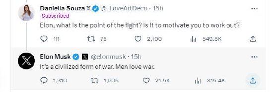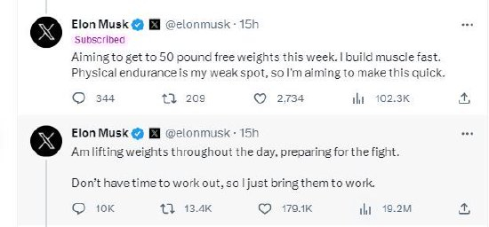 一位X用户问马斯克:“埃隆,这场格斗的意义是什么?是为了激励你锻炼吗?”
