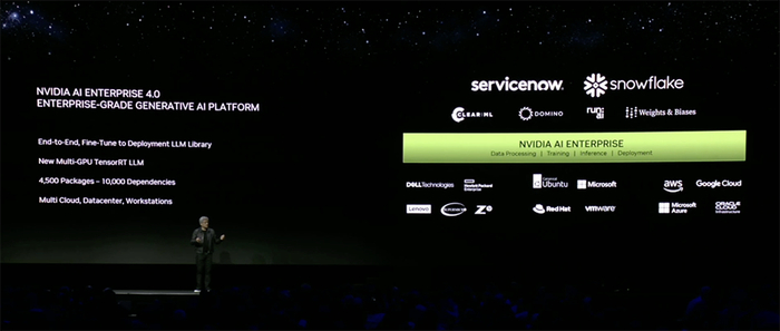 最新版的企业软件平台NVIDIA AI enterprise 4.0,可提供生产就绪型生成式AI工具,并提供了可靠的生产部署所需的安全性和API稳定性。