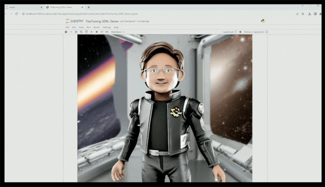 举个例子,你可以在NVIDIA AI Workbench页面上导入项目,比如导入SDXL-dev文生图模型,输入“玩偶黄仁勋在太空”,结果因为模型似乎不认识玩偶老黄,生成的图像跟老黄的形象完全不沾边。