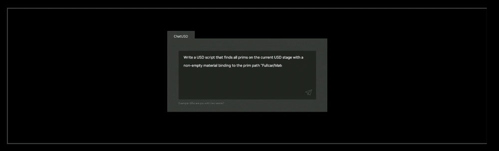(1)ChatUSD:基于NVIDIA Nemo框架的一个大型语言模型副驾驶,可回答USD知识问题或生成Python-USD代码脚本)。